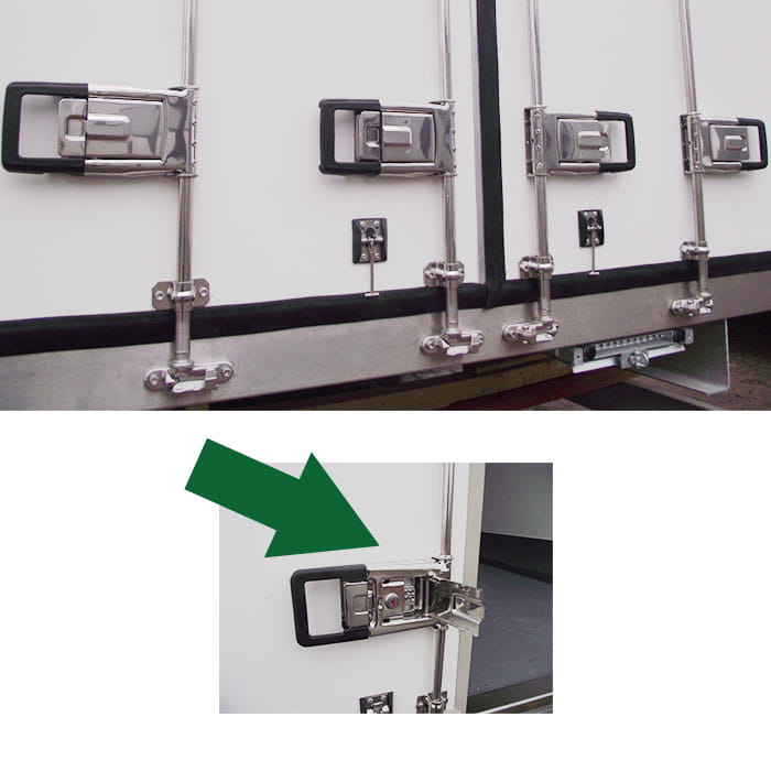 PV-03 Box Lock - zamek blokujący dźwignie prętów w skrzydłach drzwi naczep samochodów ciężarowych (np. chłodnie).