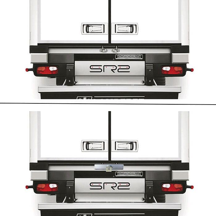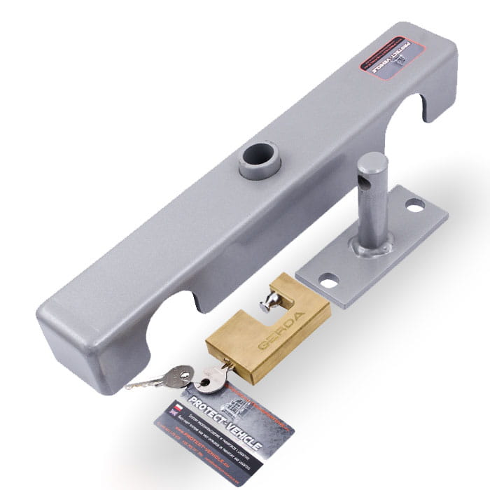 Sztaba na drzwi chłodni PV-12/P SR2 FUTURA GERDA blokada drzwi do popularnych naczep chłodni lub kontenera typu LAMBERET SR2 FUTURA. Montaż zabezpieczenia nie wymaga ingerencji mechanicznej w naczepę i tym samym nie narusza konstrukcji drzwi. Zamykanie odbywa się poprzez nałożenie prostokątnego korpusu zabezpieczenia w miejscu wcześniej zamontowanego elementu na oryginalne śruby w naczepie i zapięcia kłódki zamieszczonej w zestawie. Otwieranie odbywa się tylko za pomocą klucza i otwarcia kłódki, wyjęcia jej z otworu i ściągnięcia stalowego korpusu.