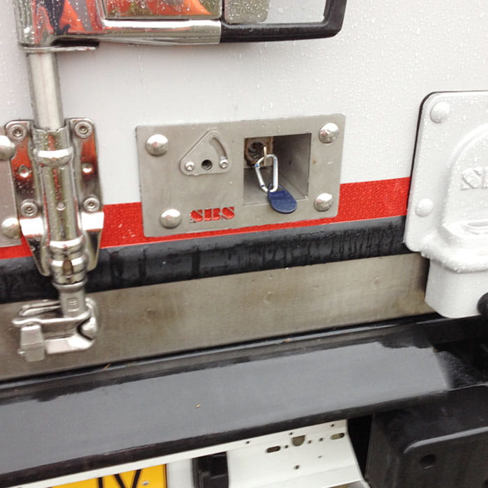 SBS INLOCK Basic - specjalna wersja do naczep typu chłodnia z uchwytem montowanym na stałe, uchwytem wyciąganym lub uchwytem łamanym.