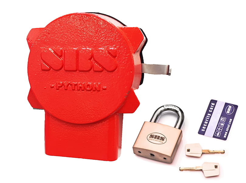 Blokada SBS PYTHON nadaje się do prawie każdego typu kontenera, chłodni, przyczepy samochodu ciężarowego włącznie w naczepami marki Schmitz. Skutecznie blokuje tylne drzwi skrzydłowe. SBS PYTHON jest wyposażona w wysokiej jakości kłódkę marki ABLOY PL358 lub SBS PL7000. Opcjonalnie istnieje możliwość wykonania zamków w systemie master key lub ststemie Key Alike (jeden kod klucza dla wszystkich blokad).